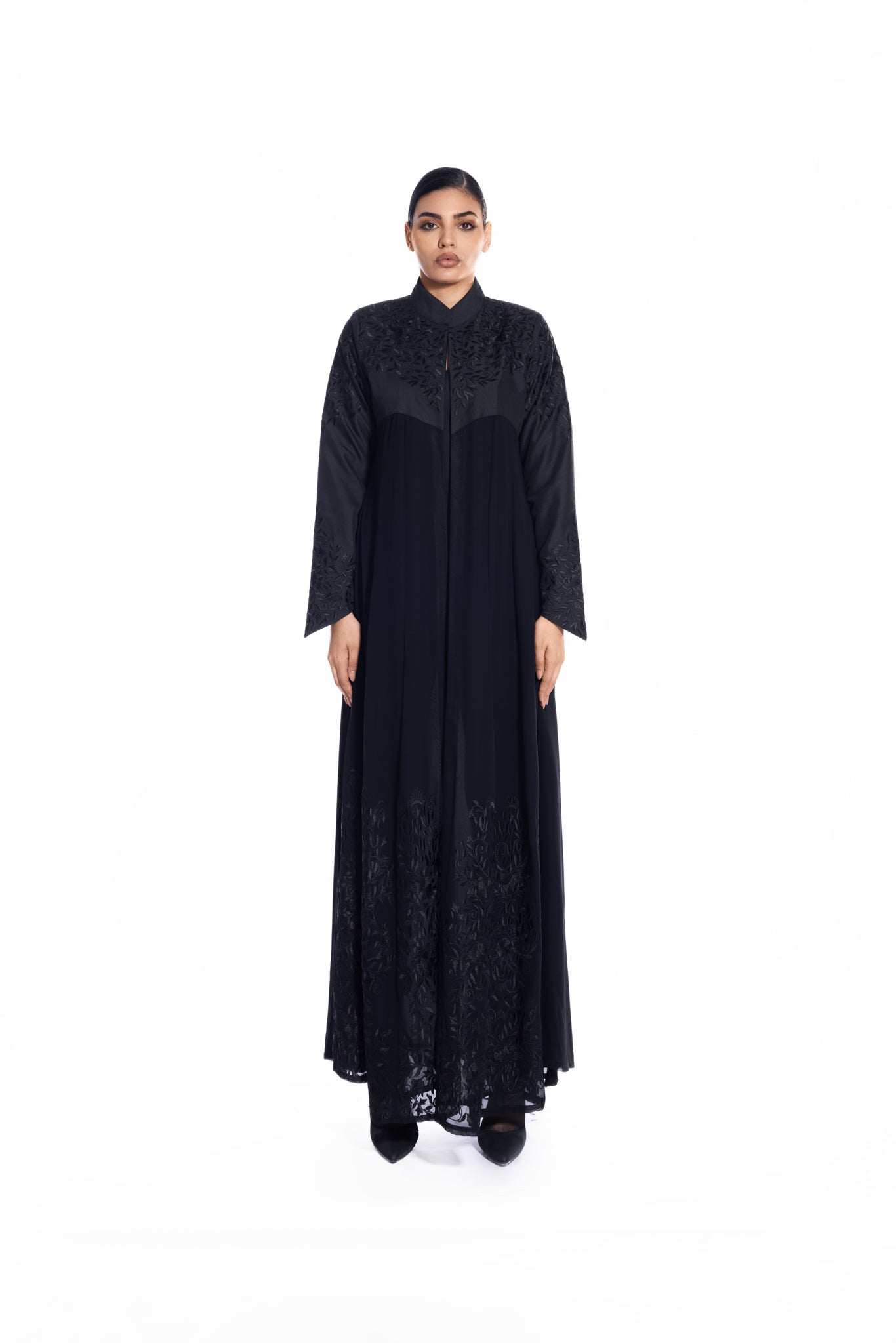 one face abaya organza fabric with embroidery work