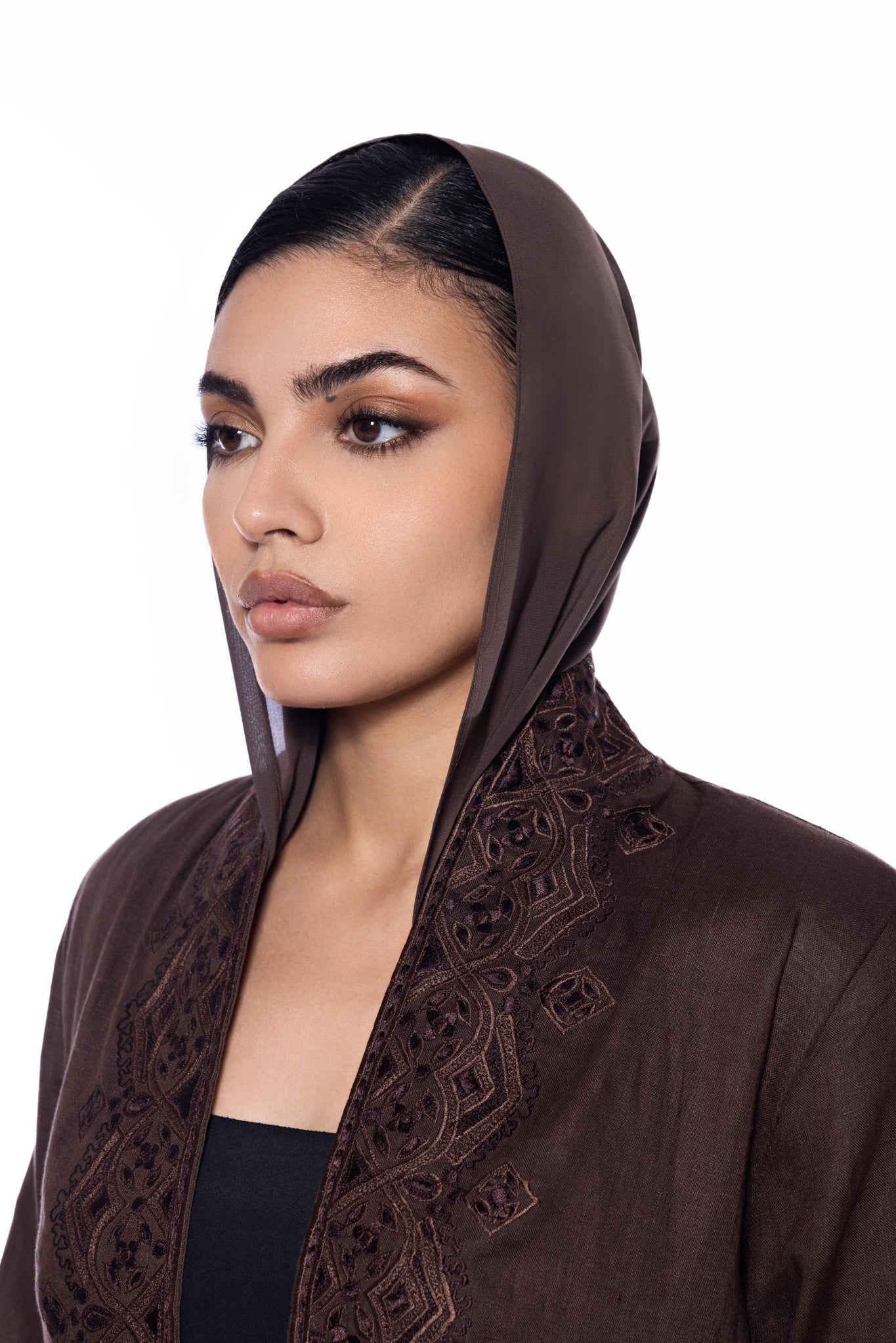 one face abaya Linen fabric with embroidery work - straight cut