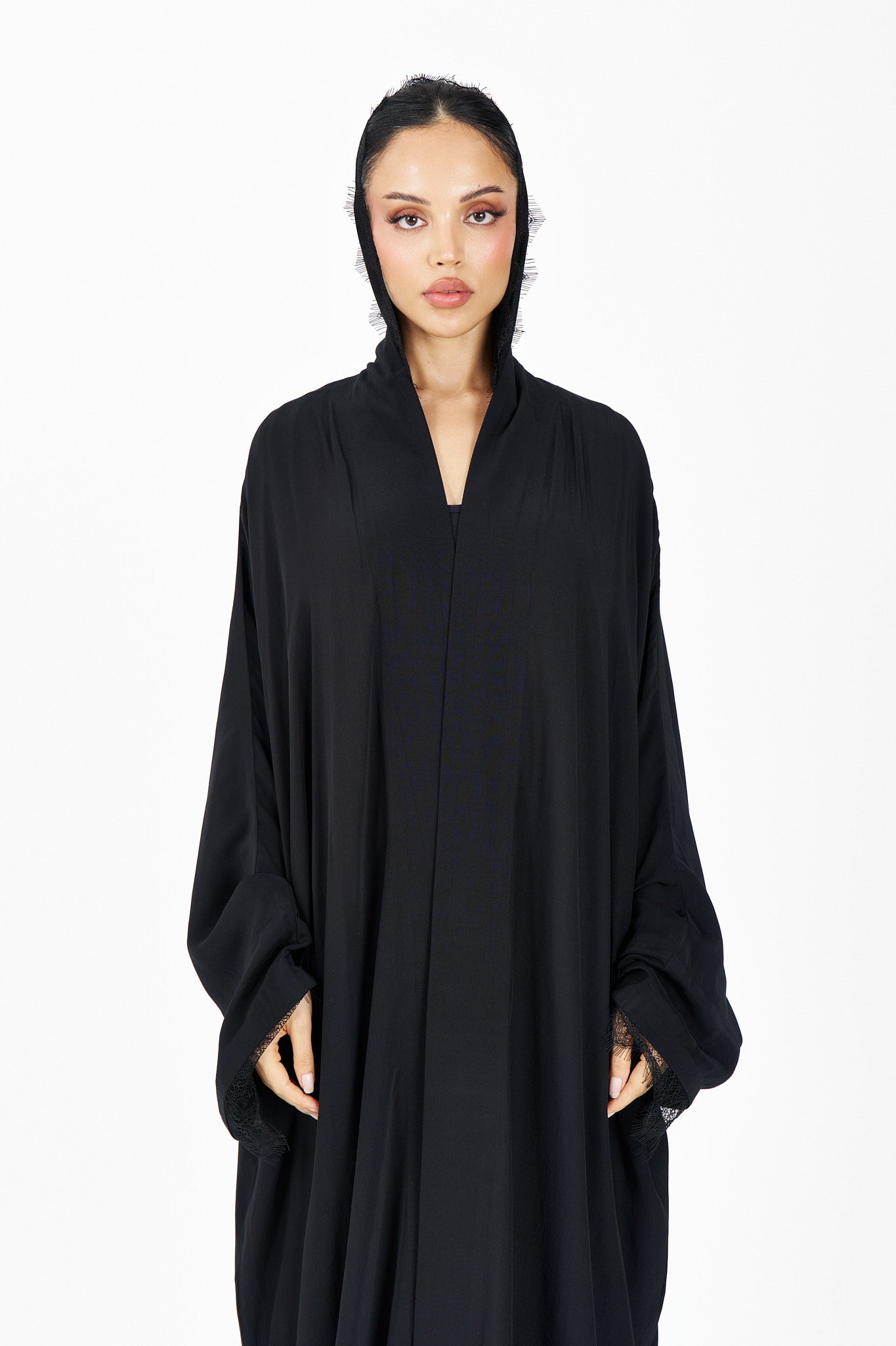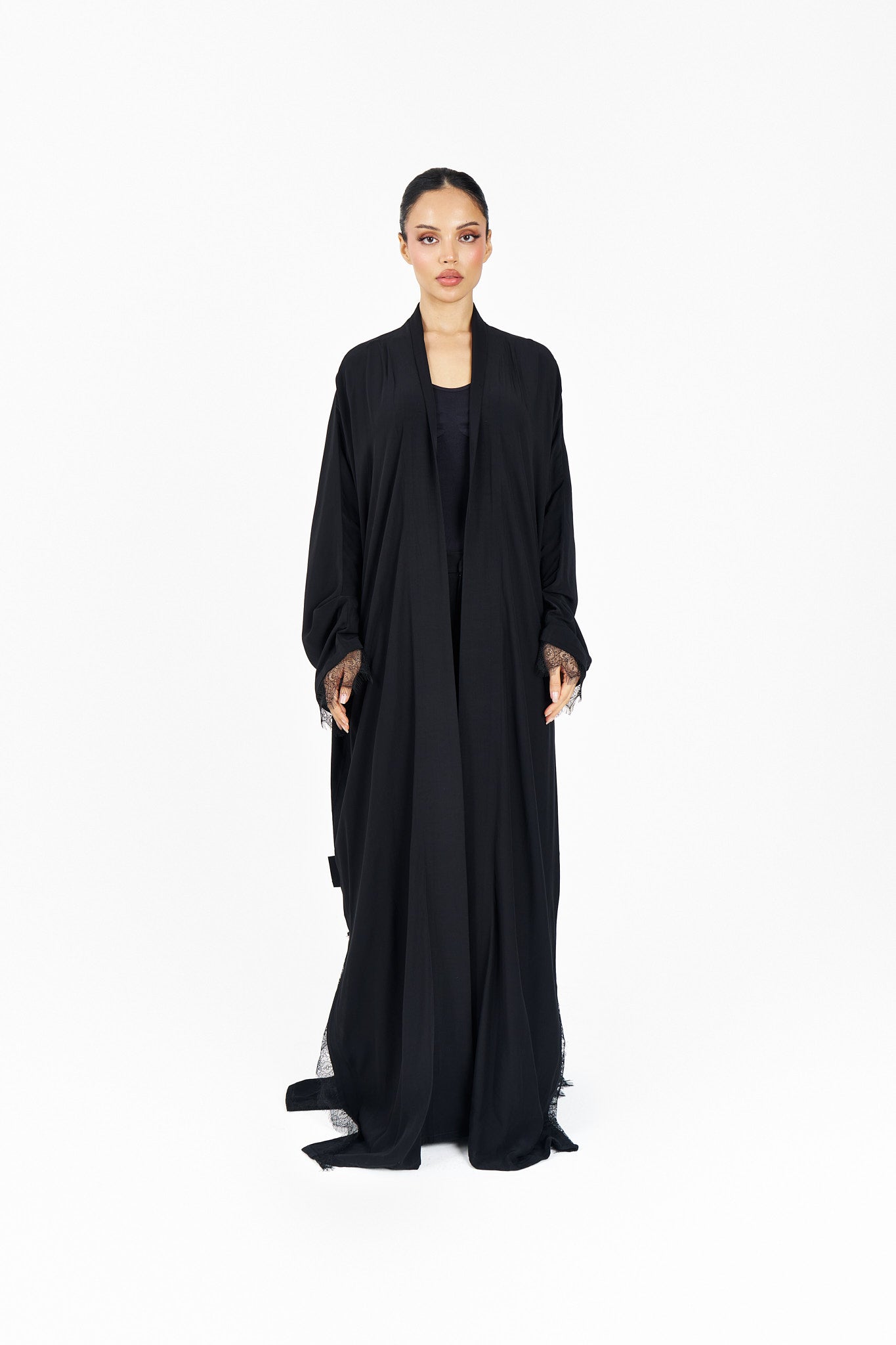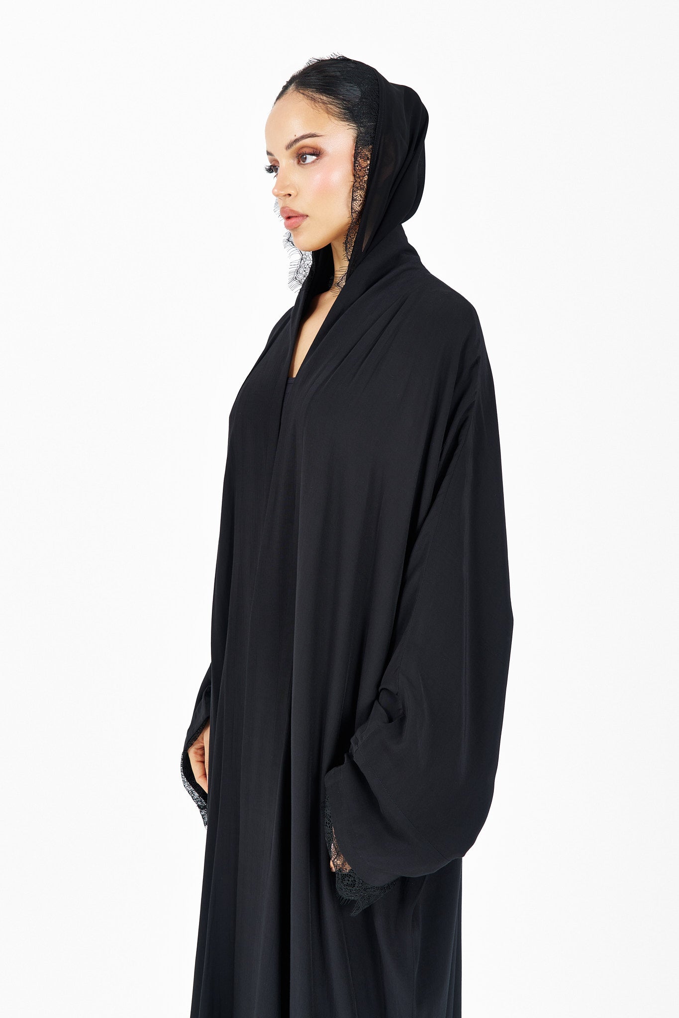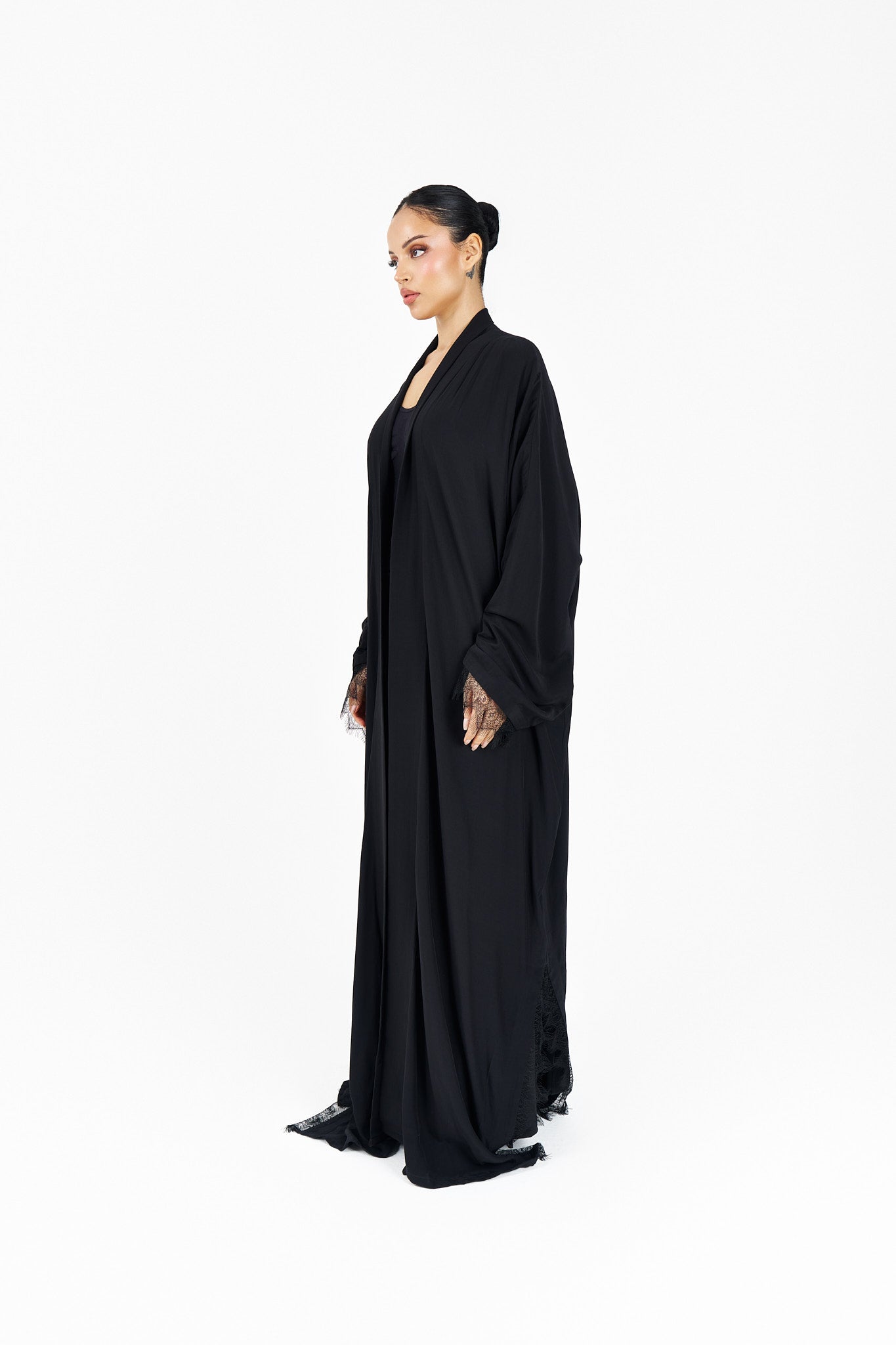 One face abaya lenin fabric with lace design