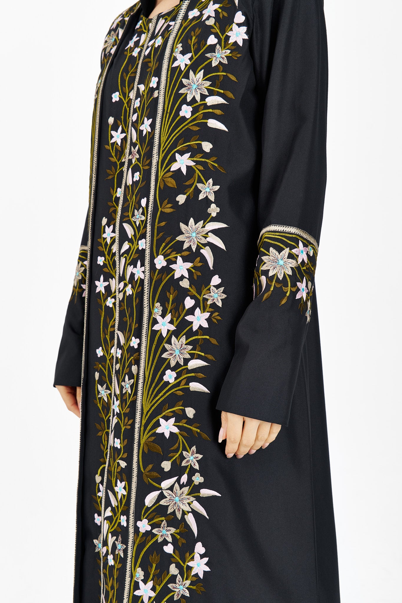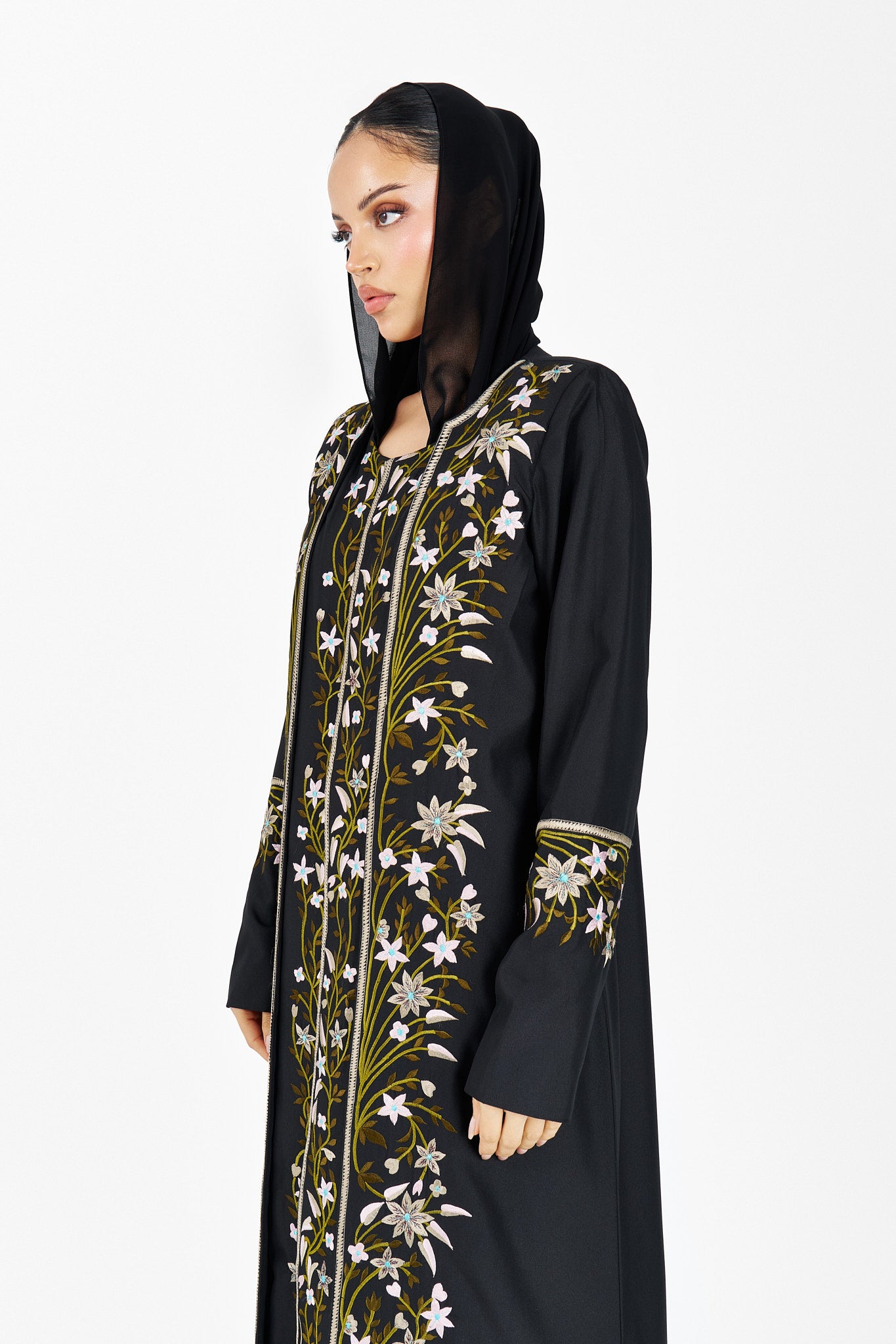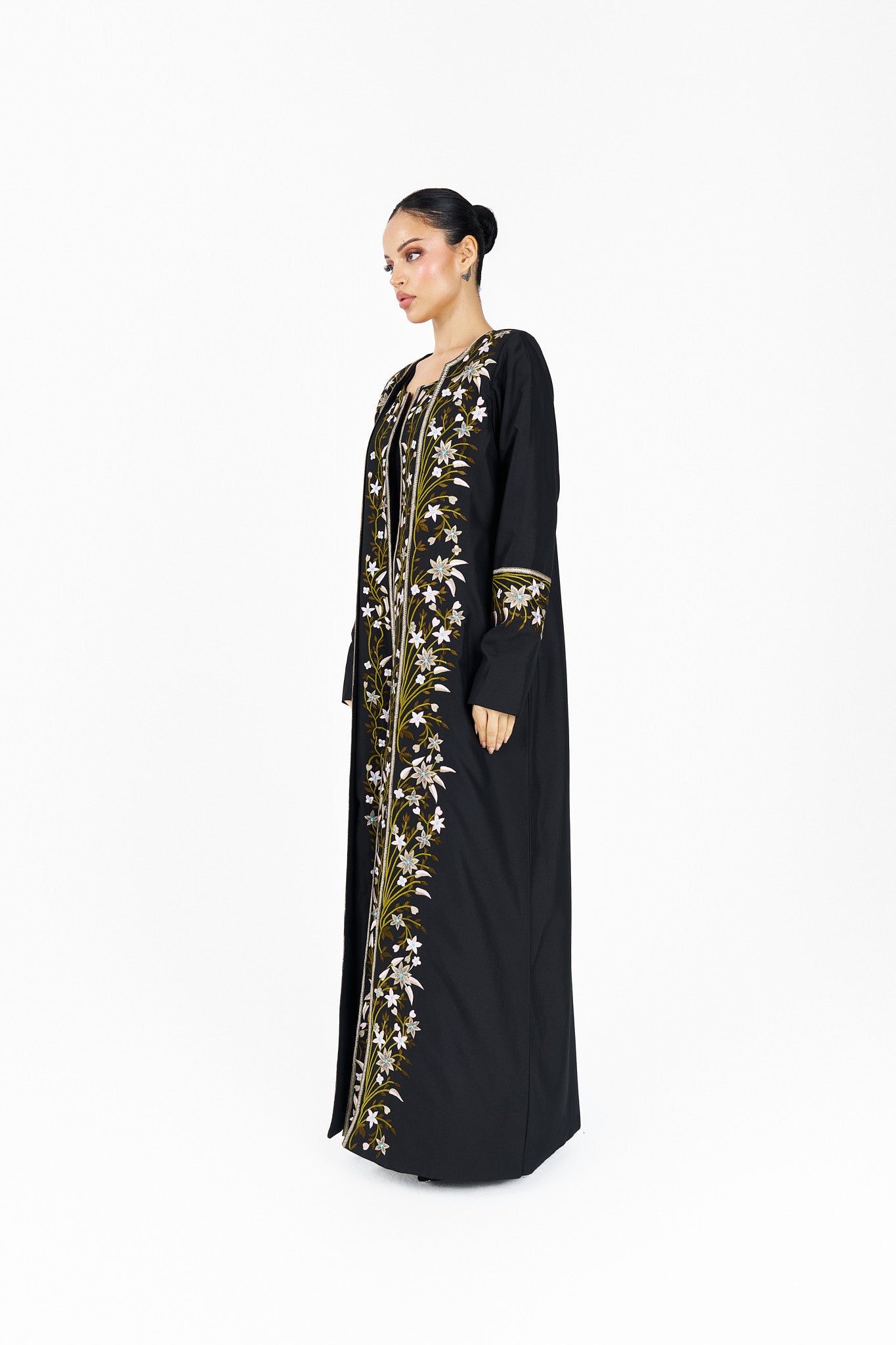 One face abaya lenin fabric with embroidery