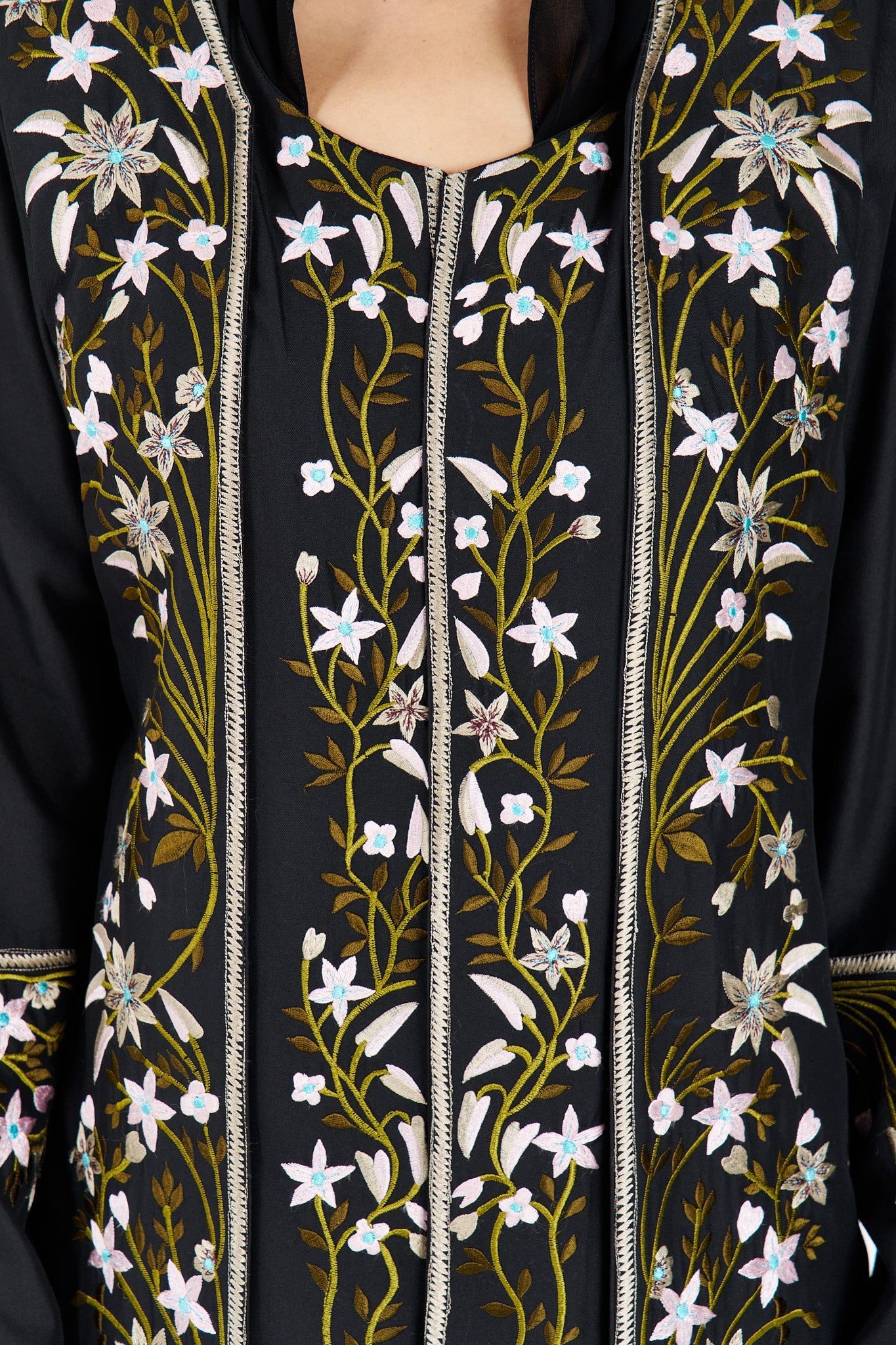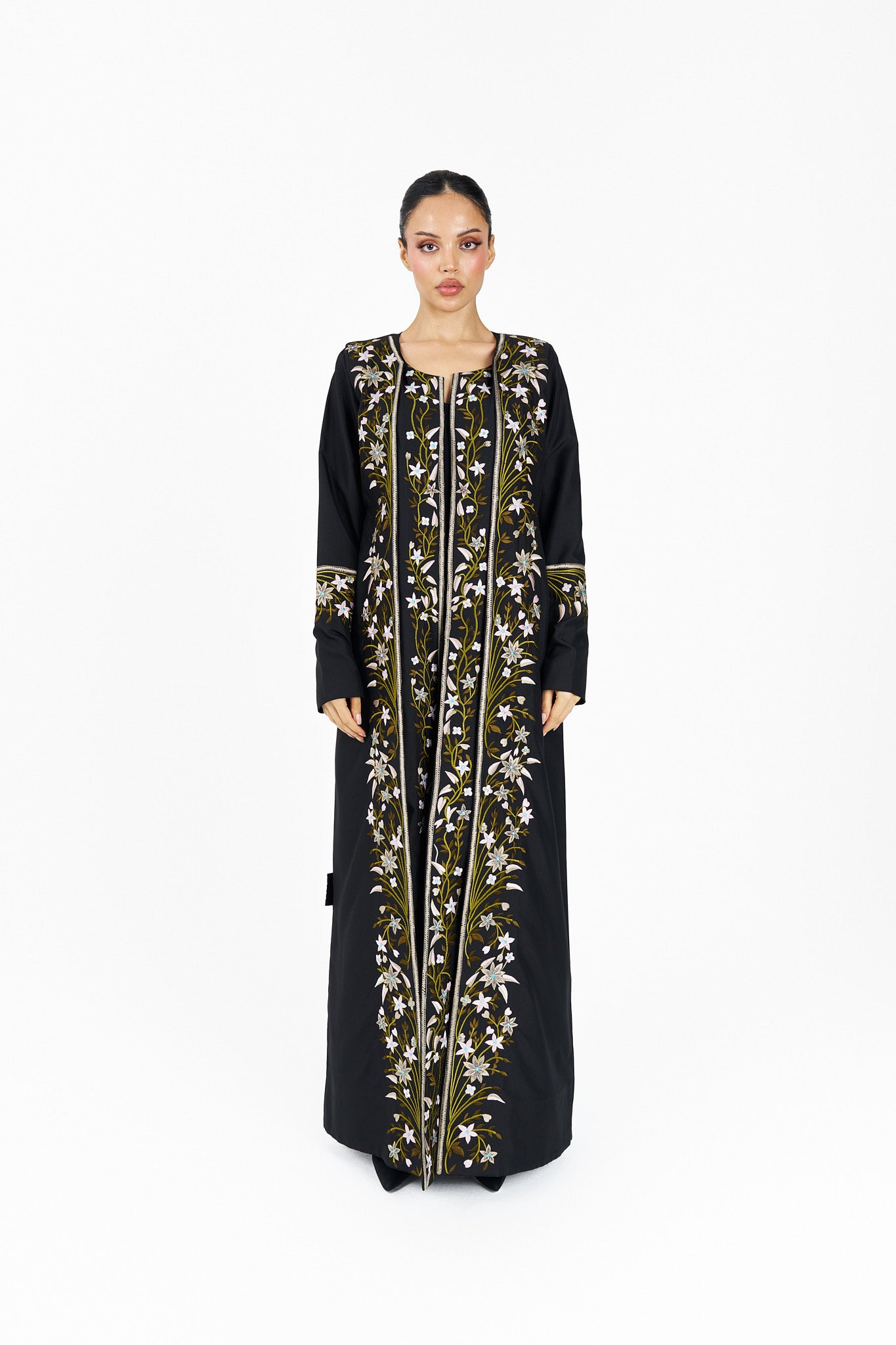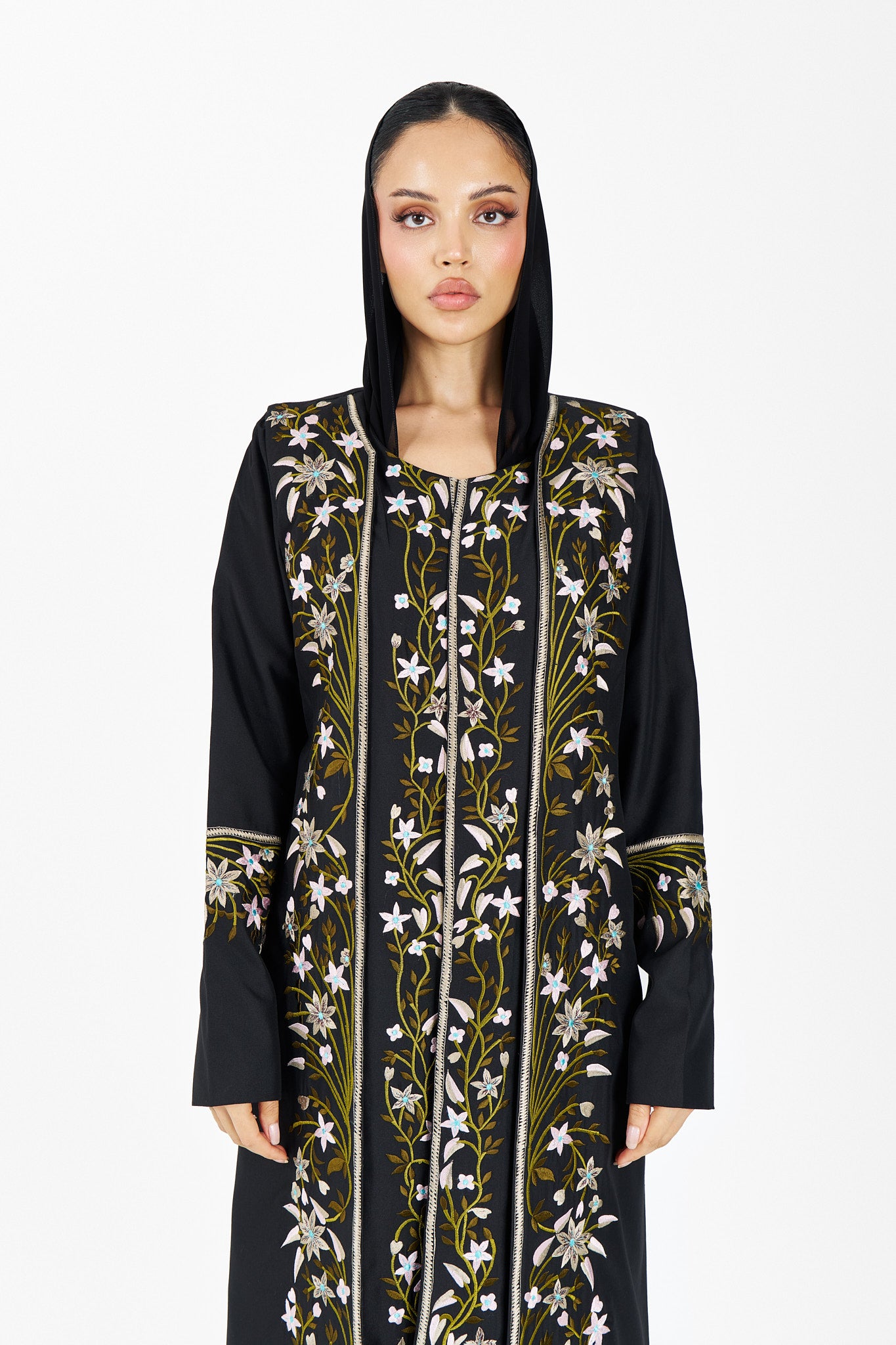 One face abaya lenin fabric with embroidery